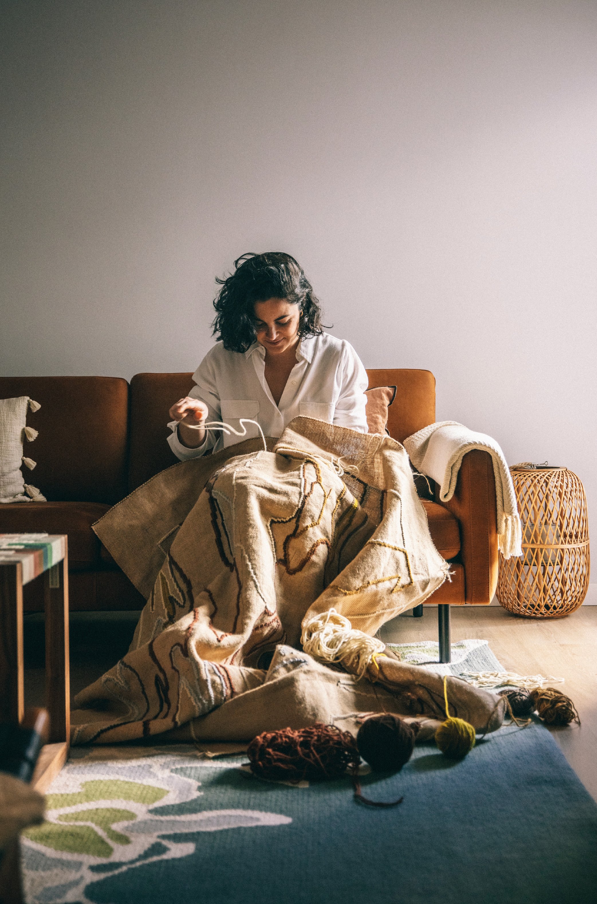 Mariana Rola Pereira’s work explores themes of uprooting, longing and identity through techniques commonly associated with tradition and artisanal making. At the core of her practice lies a deep connection to her Portuguese cultural heritage, particularly through the Arraiolos embroidery. This technique, rooted in Portugal’s ornamental and artistic tradition, acts as a bridge for communication and expression; using material to create works that manifest as opportunities for understanding onself and the world. Objects that articulate space with intention and stablish relationships between traditional craftsmanship and the reinterpretation of thread and gesture, within a contemporary perspective.